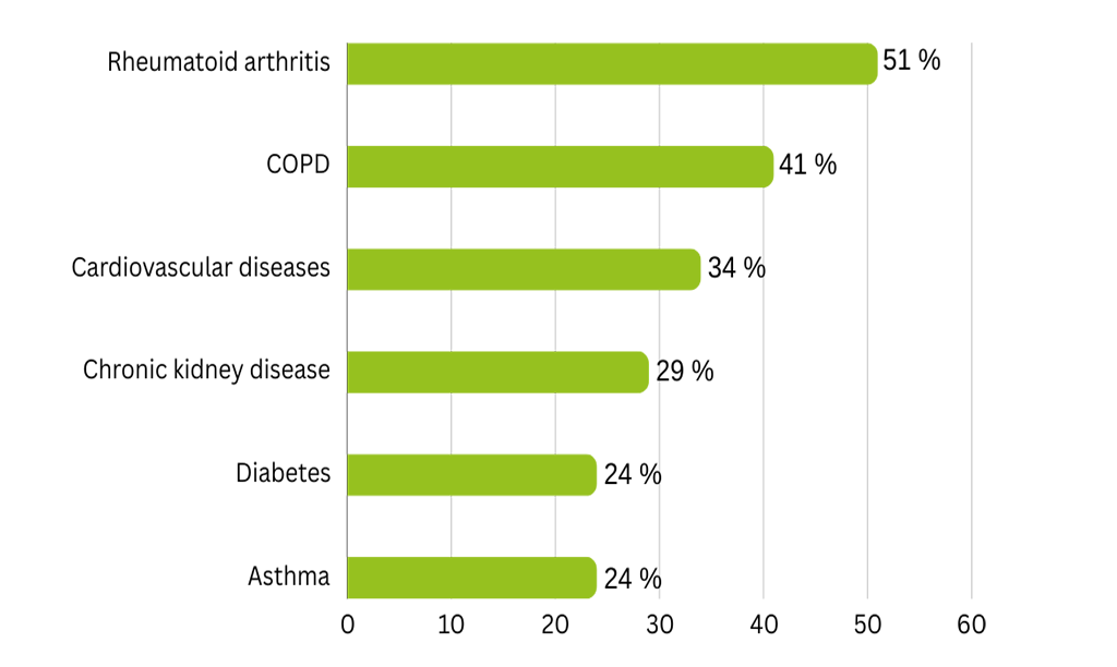 Underlying diseases increase the risk of shingles by 24% to 51%