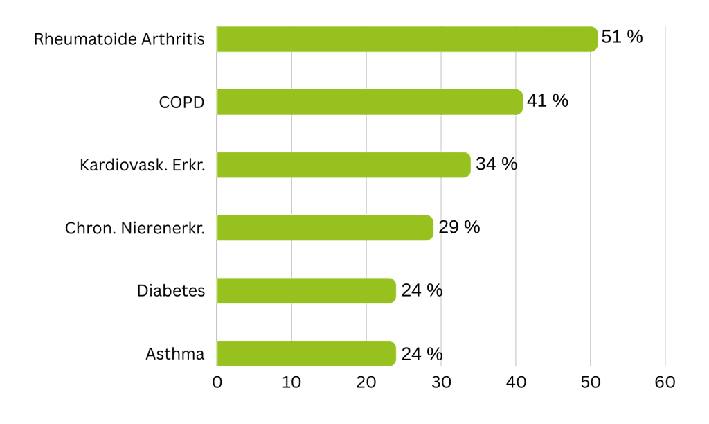 Eine Studie aus Deutschland hat nachgewiesen, dass Menschen mit einer der folgenden Grunderkrankungen ein um durchschnittlich 30 % höheres Risiko haben, an Gürtelrose zu erkranken:
